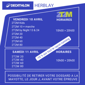 pour le samedi midi, des repas adultes et enfants sont réservables en option si vous désirez enchainer le 2t2m kids et le 2t2m 10